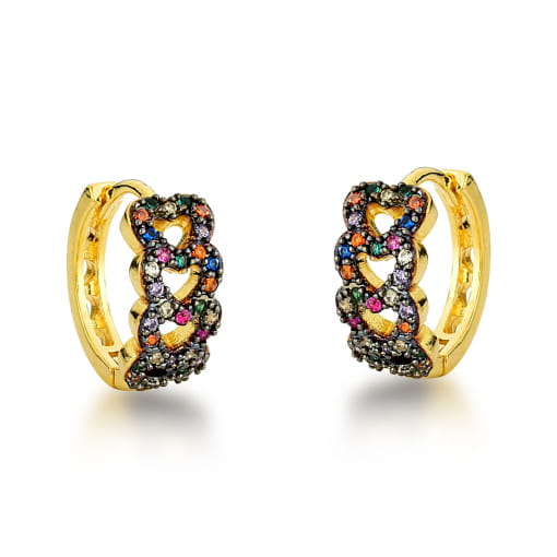 ARGOLA DE CLIQUE CRAVEJADA COM ZIRCONIAS COLORIDAS
