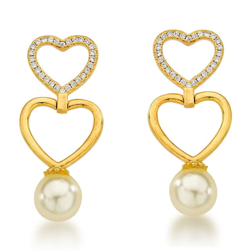 BRINCO DE CORAÇÃO COM ZIRCÔNIA E PÉROLA