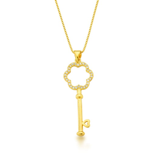 COLAR DOURADO COM PINGENTE DE CHAVE EM ZIRCÔNIAS