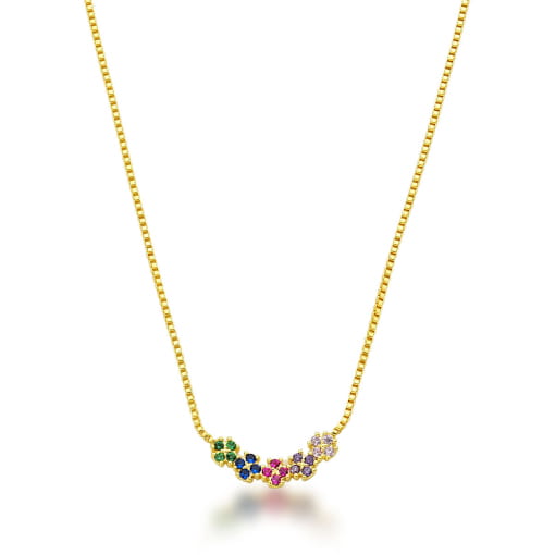 COLAR DOURADO COM FLORES DE ZIRCÔNIAS COLORIDAS