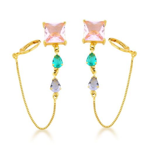 BRINCO DOURADO ARTICULADO COM PEDRAS