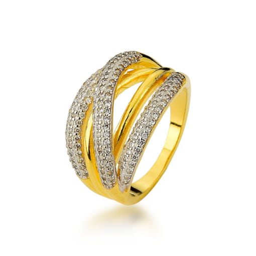 MAXI ANEL DOURADO COM FILETE EM MICRO ZIRCÔNIAS