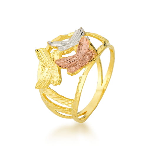 ANEL DE BORBOLETAS DOURADO COM RÓDIO BRANCO E ROSE